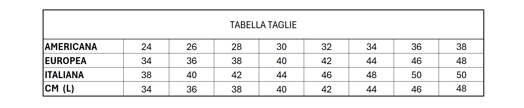 La misura L è indicata nella tabella come CM misura la vita del pantalone.